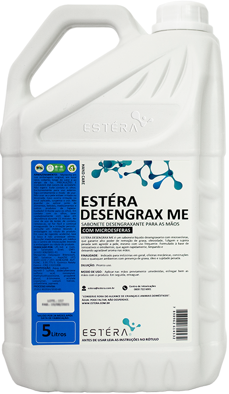 Diferencial: • Formulado com microesferas que potencializam a limpeza sem agredir a pele. • Contém emolientes e tensoativos que limpam rapidamente, deixando um aroma agradável nas mãos. • Dermatologicamente testado.